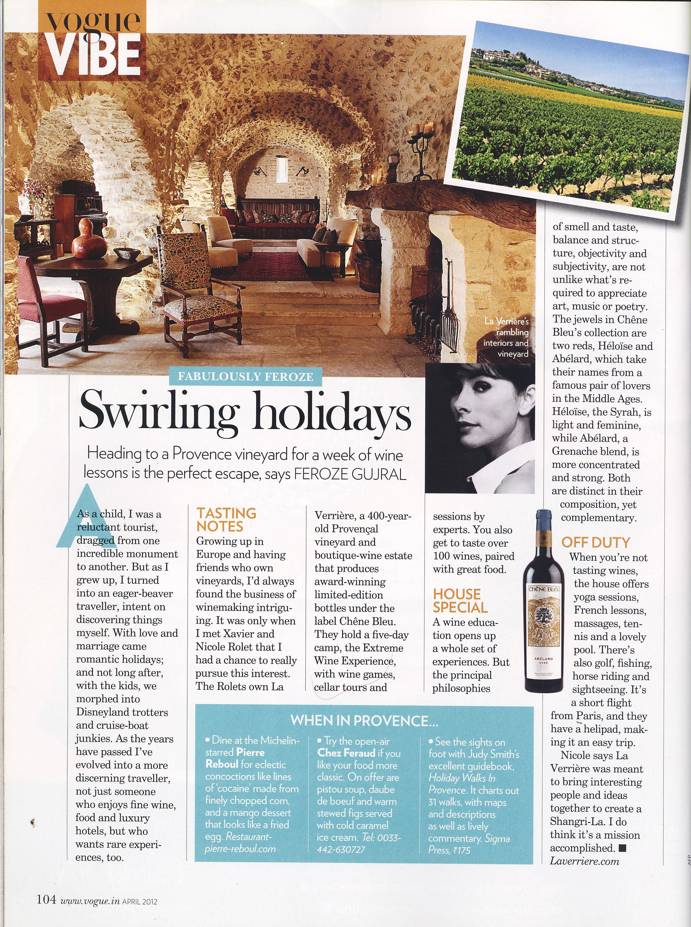 Nicole says, " La Verriere was meant to bring interesting people and ideas together to create a Shangri-La. I do think it's a mission accomplished." Indagare, September 2010, by Elena Bowes, writer and Extreme Wine participant